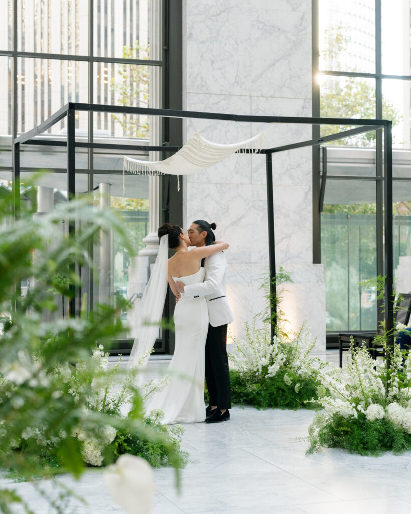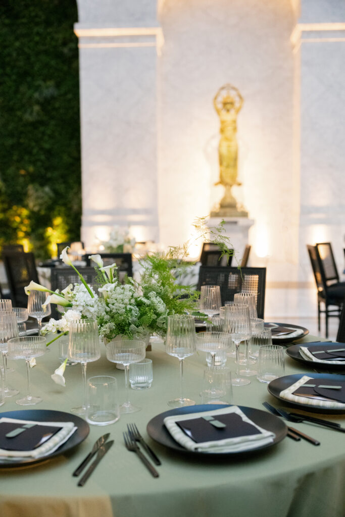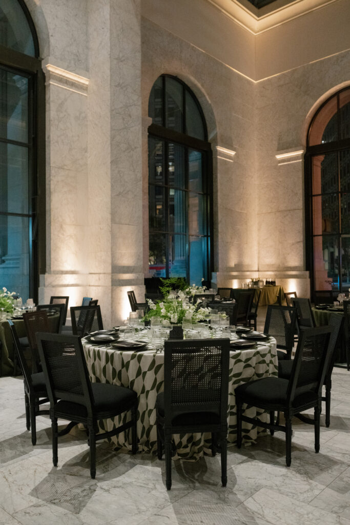 We transformed one of my favorite venues in San Francisco, The Conservatory at One Sansome on Saturday for Rachel and Phil. It was such a fun one to design and bring to life. Intentional design is rooted in storytelling. For this celebration, we played with different tones of green and mixed patterns for the linens. We used chopsticks brought back from Japan by the groom’s parents to create a seating chart that was not only functional, but deeply meaningful. Every guest left with a piece of their story—thoughtful, beautiful, and uniquely them.